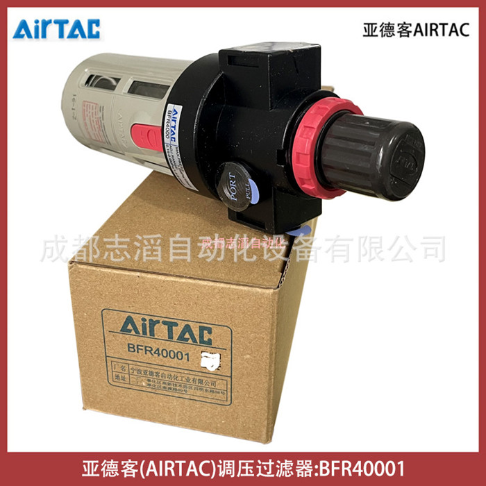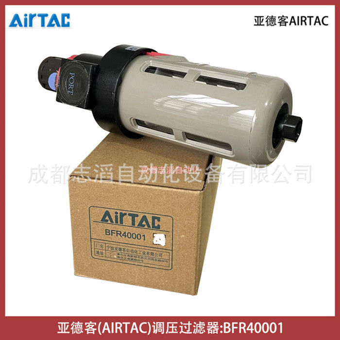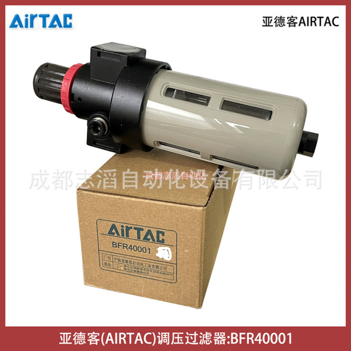 亚德客(AIRTAC)气源处理元件-A/B系列(AFC、BFC系列二联件)产品特性:结构轻巧紧凑,安装使用方便、压入式自锁机构,可防止调定压力受外界干扰产生异动、压力损失小,分水效率高、透明观察罩,可直接观察滴油量大小、除标准形式外,另有低压可供选择(可调压力0.4mpa)