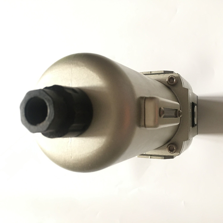 台湾亚德客(AIRTAC)气源处理单元GAFR系列调压过滤器产品特性:采用卡扣式圆形压力表,节省安装空间,表镜放大功能,刻度清晰可辩、压入式自锁机构,可防止调定压力受外界干扰而产生异动、压力调节机构采用平横式设计,压力调节更稳定,漂移量小,压力特性好、除标准形式外,另有低压型可选择(高可调压力0.4MPA)、独特的导流结构设计,使流过的气体产生适当的旋转,从而更有效的分离气体中的液体并可靠的过滤固体颗粒、过滤精度有40um,5um可选择、有压差+手动及自动排水等排水形式可供选择、杯体材料有PC,金属,尼龙可供选择,能满足不同环境的需求、可选择固定支架安装