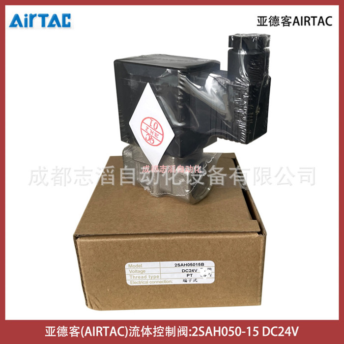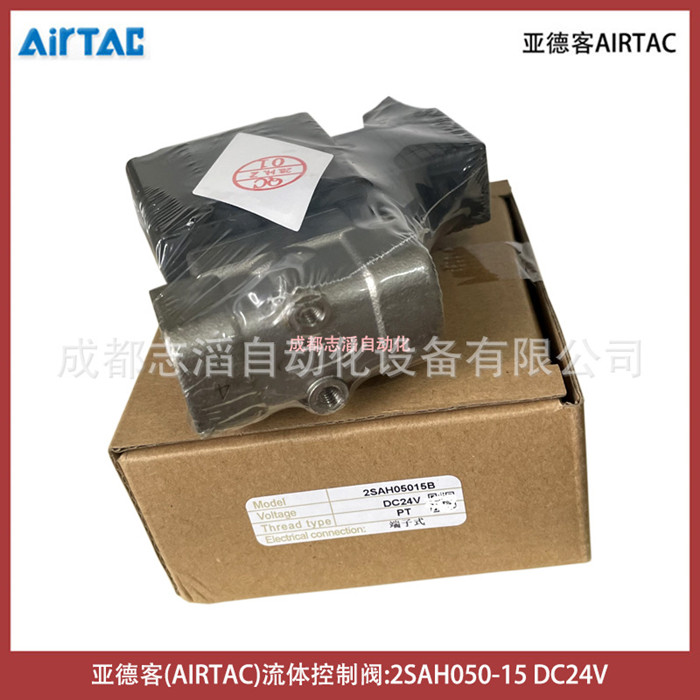 2SAH050-15线圈电压24VDC亚德客流体控制阀AIRTAC电磁阀技术参数简介:接管口径PT1/2、流体孔径4mm、CV值0.55、有效截面积10平方毫米、重量510g、操作压差可达2mpa(300PSI)、耐压可达5mpa(750PSI)、初始状态常闭型、使用流体空气,水,油、使用流体粘度20cst以下、环境及流体温度范围水(1-80摄氏度),空气(-20到90摄氏度),油(-10到80摄氏度),环境(-20到70摄氏度)、线圈电压24VDC、防护等级IP65、功耗12瓦、产地中国、货期1周