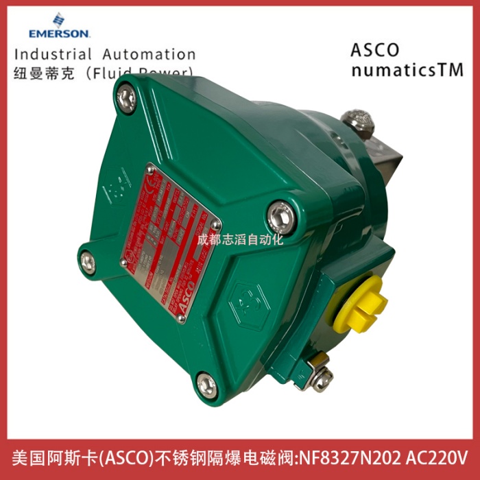NF8327B202线圈电压AC220V美国阿斯卡ASCO不锈钢隔爆电磁阀技术参数简介:管径1/4、U-通用型、密封材料FPM(氟橡胶)、温度范围-20道120摄氏度、线圈功耗等级MP-中等功耗(5.7-5.8瓦)、通径5.7mm、流量系数0.45立方米.小时、工作压力0-10bar、阀体材料不锈钢、直动式、基本流量、平衡提升结构、工作介质空气,惰性气体,水,油、响应时间75-100ms、粘度可达65cst(mm²/s)、接口螺纹NPT、线圈NF(隔爆型-316SS外壳ATEX+IECEX(EN/IEC60079/61241))、线圈电压24VDC、电气连接1/2NPT螺纹、货期6-8周