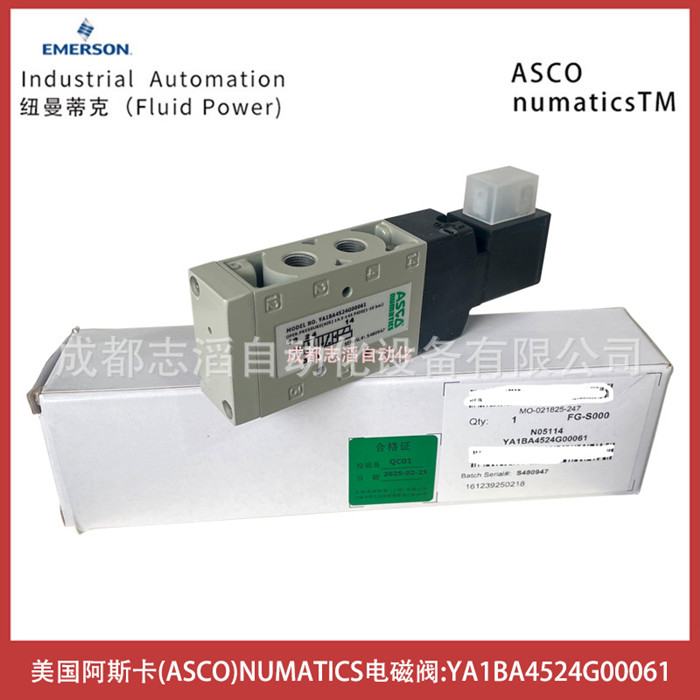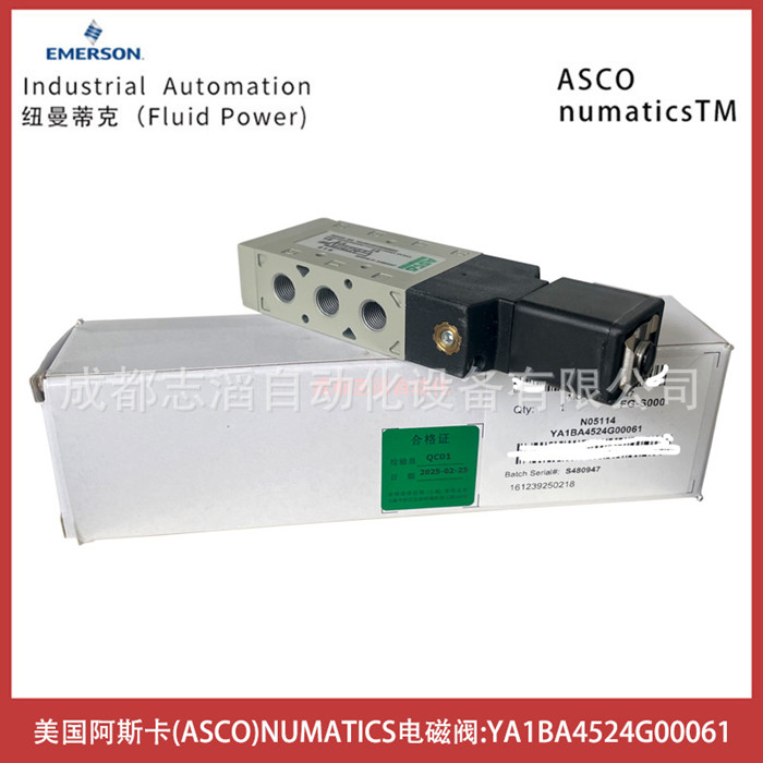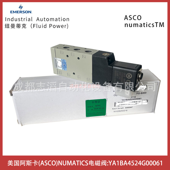 YA1BA4524G00061美国阿斯卡ASCO电磁阀-NUMATICS气动控制阀技术参数简介:功能2位5通、驱动方式电控/弹簧复位、接管口径G1/4、压力1-10bar、介质压缩空气、阀体材料阳极氧化铝、线圈电压24VDC、功耗2.5瓦、产地中国、货期1周