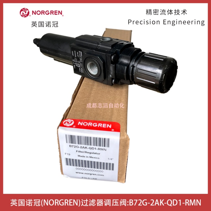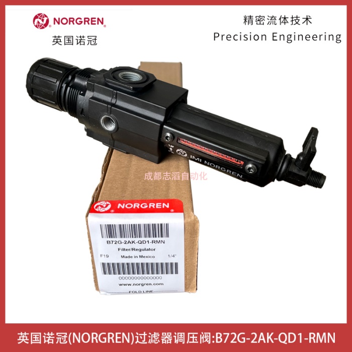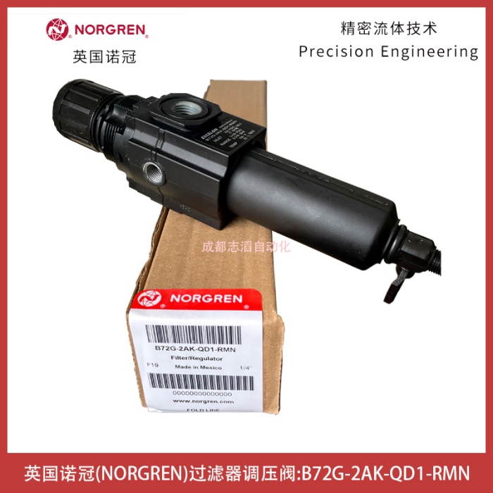 B72G-2AK-QD1-RMN英国诺冠NORGREN过滤器调压阀-埃迈IMI技术简介:气口尺寸为G1/4、流量为49立方分米/s、金属杯、重量0.650kg、过滤精度为5um、出口压力调节范围为0.3-10bar、不带压力表、膜片为溢流式!