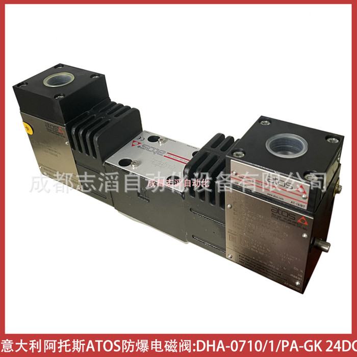 DHA-0710/1/PA-GK线圈电压24VDC意大利阿托斯ATOS防爆电磁阀技术参数简介:型号:DHA-0713P/PA-GK-24DC、驱动方式:电磁驱动(24VDC电源)、线圈数量2个、介质温度:常温、材质:球墨铸铁、出口压力:≤4MPa、属于防爆型电磁阀,适用于能源化工工况、电磁铁接口采用GK螺纹(ISO/UNI-6125锥螺纹)、流动方向:单向、