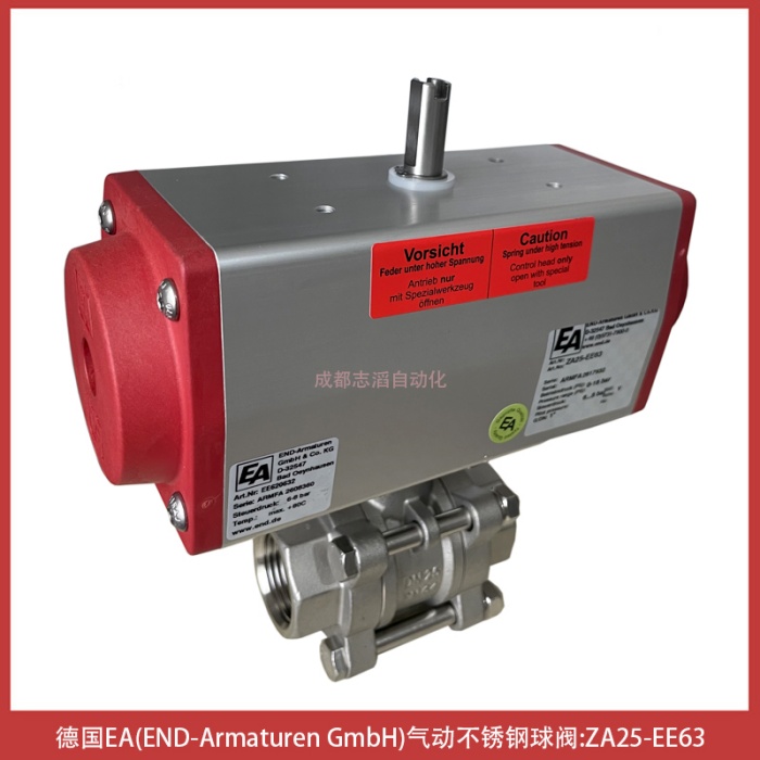 ZA25-EE63德国EA(END-Armaturen GmbH)不锈钢气动球阀包含执行器-ZA25-EE63 是德国 END-Armaturen(简称 EA)品牌生产的一款不锈钢气动球阀,主要用于工业流体控制系统中实现介质的切断或接通。该型号属于 EA 阀门系列中的经典产品,凭借不锈钢材质和气动驱动方式,广泛应用于化工、能源及水处理等对耐腐蚀性和自动化要求较高的场景、核心参数与特性、这款阀门的核心优势在于其材质与驱动方式的结合材质性能:采用不锈钢制造,具备优异的耐腐蚀性和耐高压能力,能够适应恶劣的工业环境、驱动方式:作为气动球阀,它通过压缩空气驱动执行机构,响应速度快,适合集成到自动化控制系统中、产品系列:在 EA 的产品线中,ZA25 系列通常与 ZA23 系列(如 ZA23-EE55)并列,分别对应不同的口径或压力等级,以满足多样化的工程需求、应用场景与选型建议、适用介质:常用于水、蒸汽、油品及部分腐蚀性化学介质的输送管道配套组件:在实际工程应用中,常需搭配相应的电磁阀(如 EA 的 MGMG 系列)或定位器使用,以构建完整的控制回路、替代与兼容:若需寻找替代品或备件,可重点关注 Art.Nr 编号为 ZA25-EE63 的完整标识,同时参考同系列的 ZA64-EE63 等型号进行参数比对