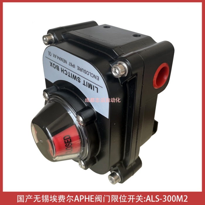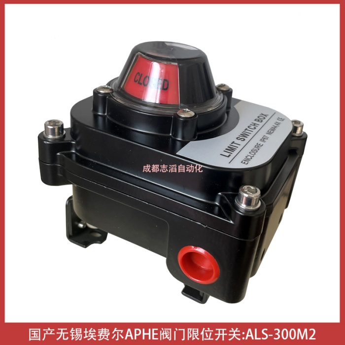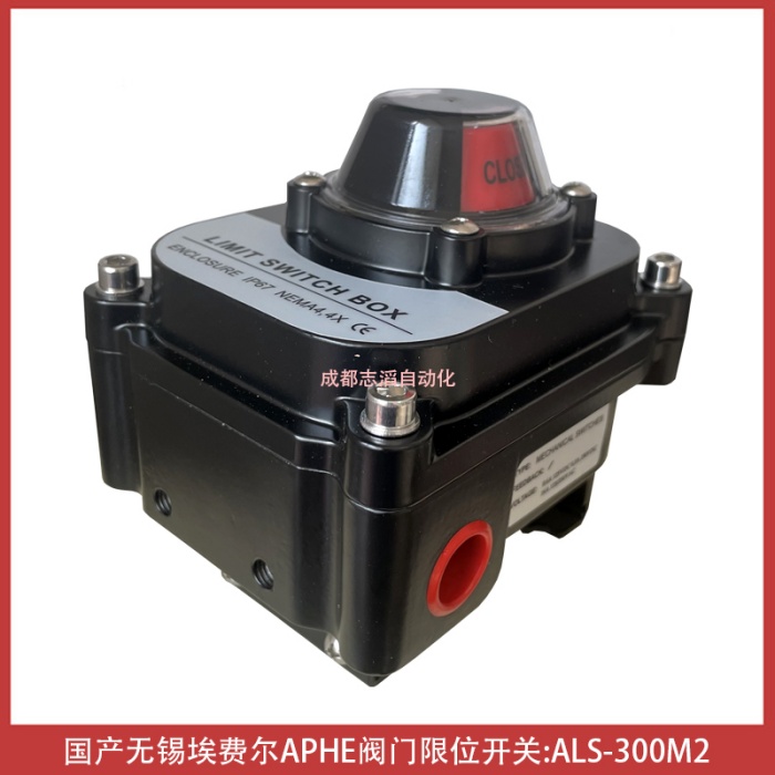 ALS-300M2国产品牌无锡埃费尔阀门限位开关APHE回讯器产品功能简介:三维位置指示器能够清楚的显示阀门所处的位置、压铸铝合金壳体,粉末涂层,紧凑设计外型美观,减少阀门包装体积,质量可靠、双线接口 双1/2 NPT管接口、信号反馈器、开关位置可由指示器清楚辨识、多接点内接线路板 内部8个触点接线板符合微型开关的标准,DPDT开关可选、接近开关、磁性开关可选并可用于电磁阀的连接、“快速位置”凸轮; ITS-100限位开关的可调节凸轮通过花键和弹簧安装;开关凸轮的位置不用工具即可进行快速调整、用PCB板代替接线,防止短路、环境温度:-25~85℃,防护等级:IP67,可选IP68,防爆等级:ExdII BT6、Eexd IICT6,符合EN50014/50018标准、双接线口,标准接点,接线安全、方便ALS系列阀门限位开关是自动化控制系统中检测阀门状态的现场仪器,用以将阀门开启或者关闭位置以开关量信号输出,以被程控器接收或计算机寻访采样,确定后执行下一步程序,该产品也可以作为自控系统中重要的阀门连锁保护及远程报警指示之用,产品获得众多阀门客户的认可、货期1周